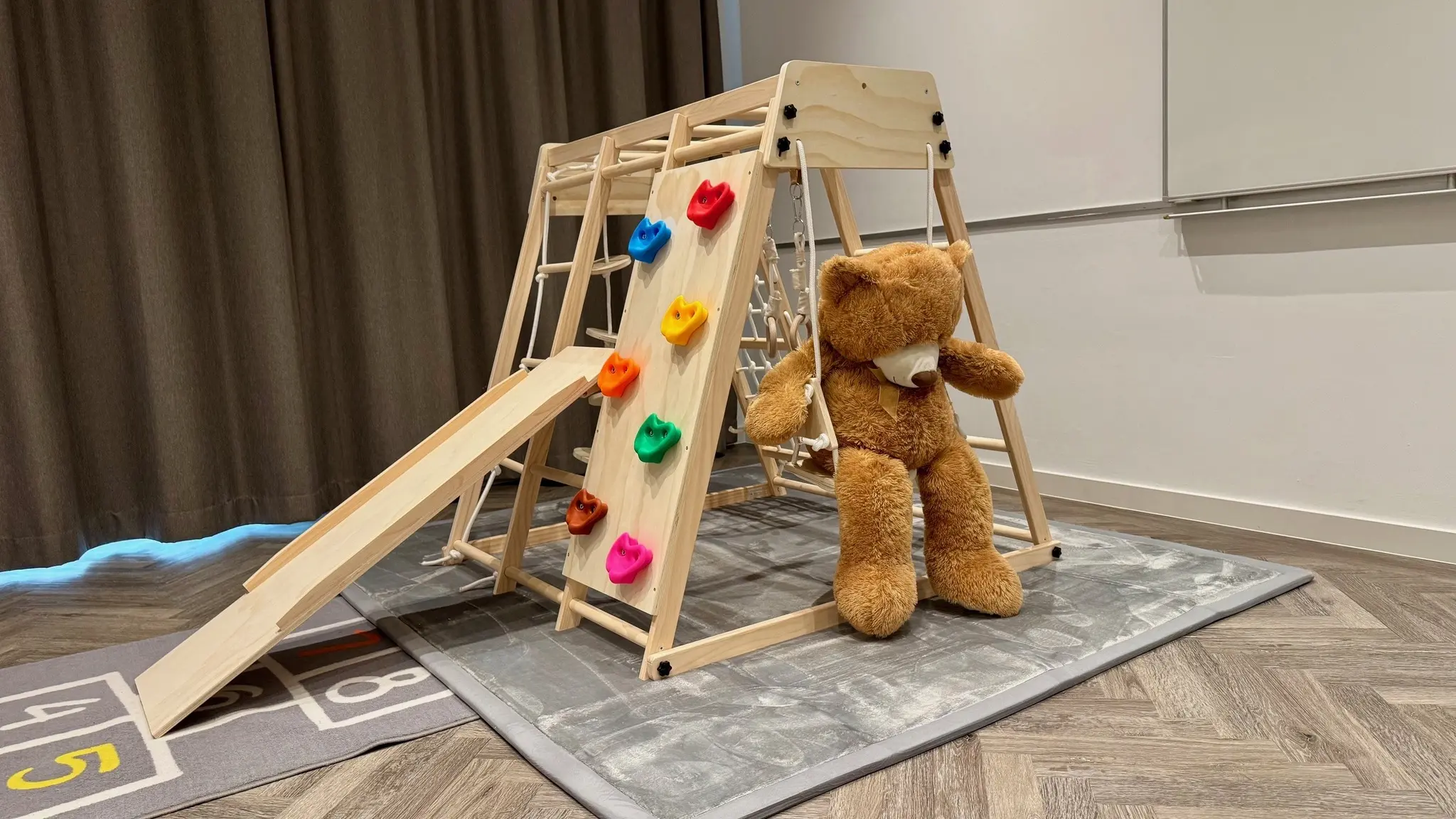Liebevoll eingerichtetes Spielzimmer mit Malsachen, Spielen und kleinem Kletterturm, sowie auf Anfrage Spielekonsole.