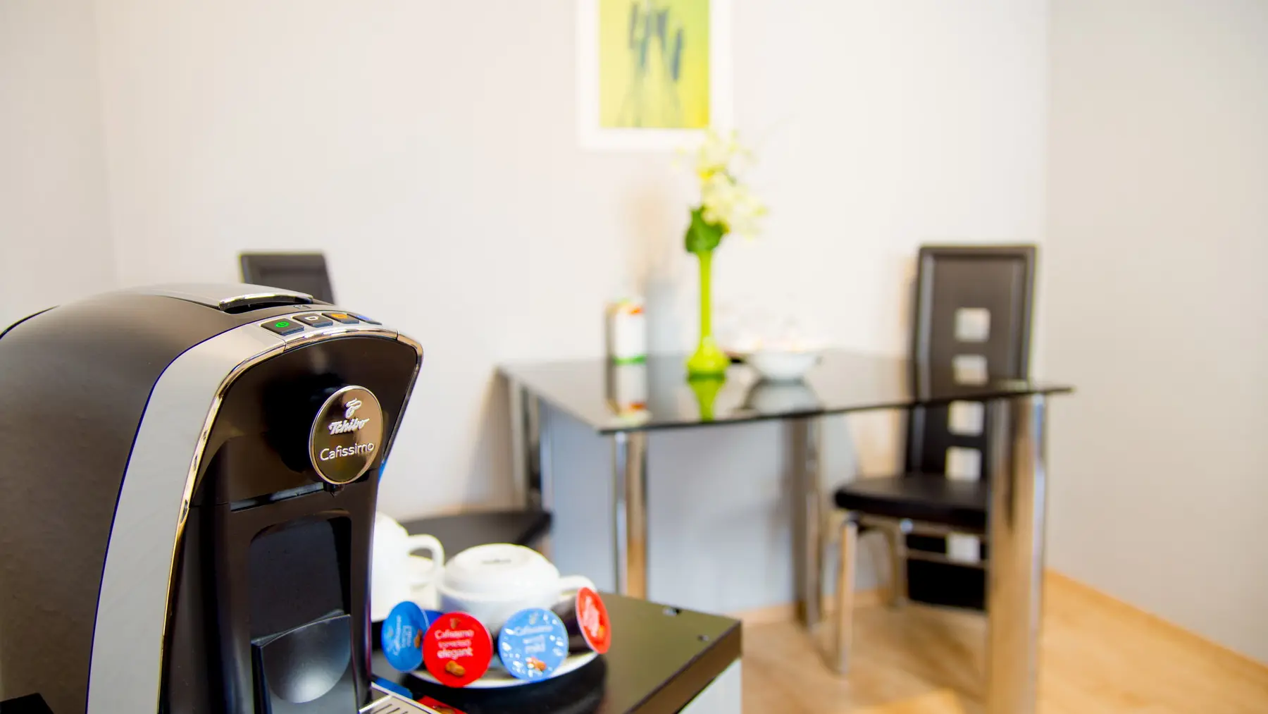 Starten Sie entspannt in den Tag mit unserem reichhaltigen Frühstücksbuffet, das wir täglich mit viel Liebe für Sie vorbereiten. Für Tagungen, Veranstaltungen und Gruppenanfragen öffnet unsere Küche ebenfalls gerne ihre Türen und sorgt für passende kulinarische Begleitung. Bitte beachten Sie, dass unser Abendrestaurant derzeit geschlossen ist. Für den kleinen Hunger zwischendurch steht Ihnen jedoch rund um die Uhr ein 24/7-Snackautomat zur Verfügung. Falls Sie ein Appartement mit eigener Küche gebucht haben, finden Sie Geschäfte für den täglichen Bedarf in unmittelbarer, fußläufiger Nähe. Und wenn Sie Lust auf ein Abendessen außer Haus haben: An unserer Rezeption empfehlen wir Ihnen gerne Restaurants in der Umgebung – von gemütlich bis gehoben, von regional bis international – hier ist für jeden Geschmack etwas dabei.