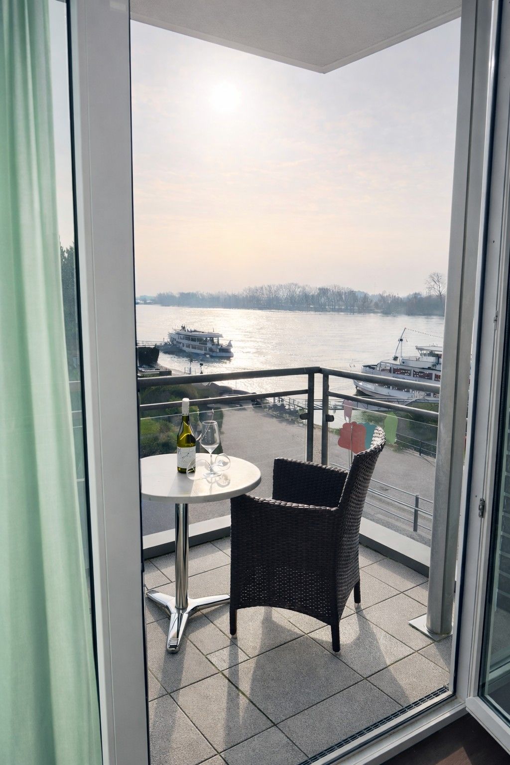 Auch von hier genießen Sie die tolle Aussicht auf den Rheinverlauf. Bitte fragen Sie die tagesaktuellen Öffnungszeiten bei unseren Mitarbeitern an der Rezeption an.