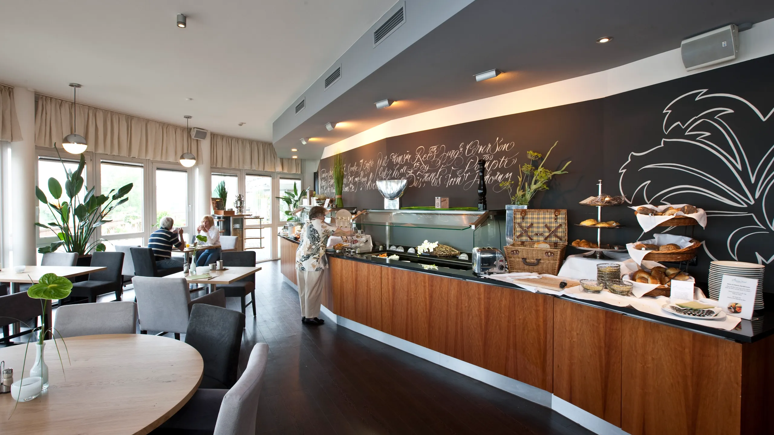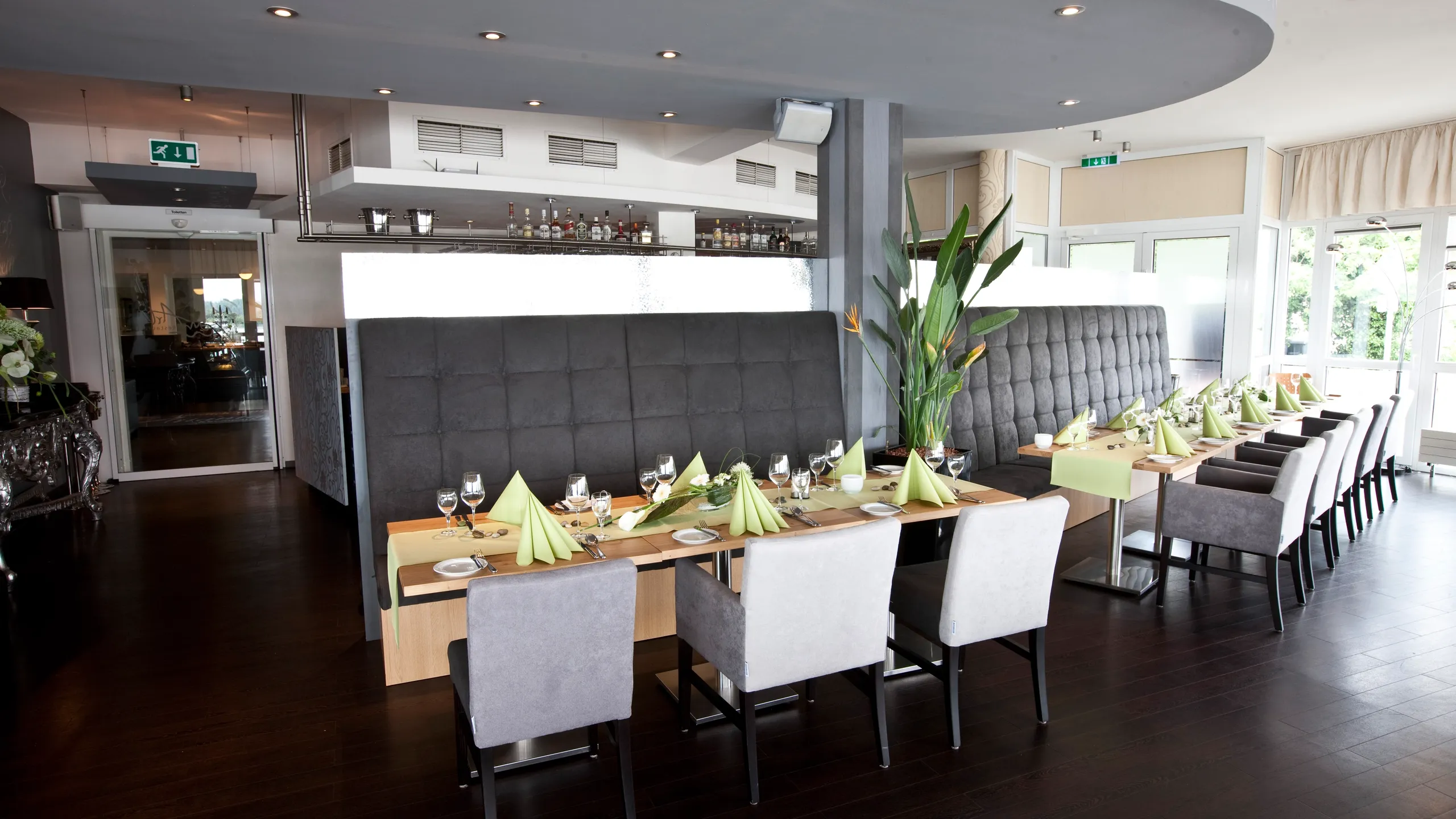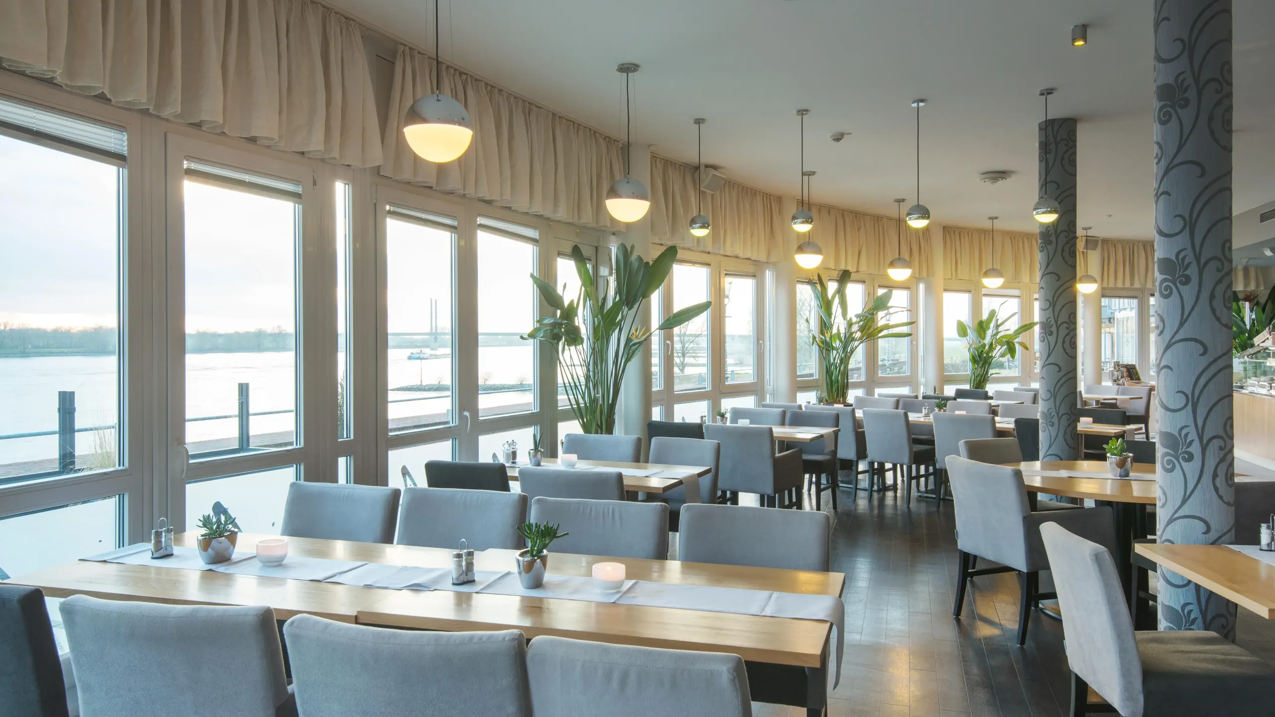 Genießen Sie im Restaurant mit Hotelbar und auf unserer Terrasse abwechslungsreiche, kreative Gastronomie und kulinarische Leckerbissen mit herrlichem Ausblick auf den Rheinverlauf und die Rheinauen. Das Restaurant und die Außenterrasse laden ein zum ausgiebigen Frühstück, einem leichten Mittagessen, Kaffee und Kuchen oder einem Dinner am Abend.