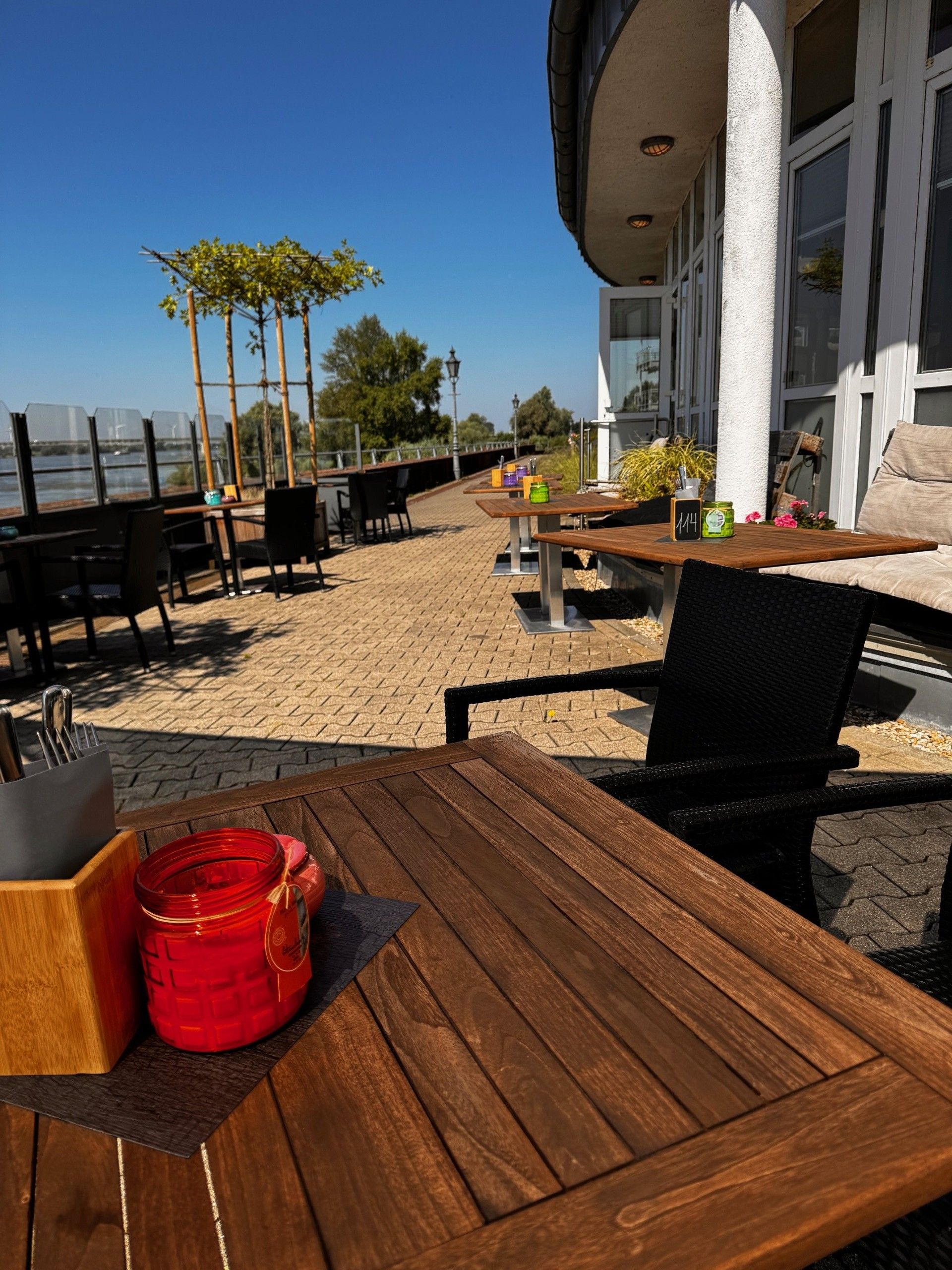 Genießen Sie im Restaurant mit Hotelbar und auf unserer Terrasse abwechslungsreiche, kreative Gastronomie und kulinarische Leckerbissen mit herrlichem Ausblick auf den Rheinverlauf und die Rheinauen. Das Restaurant und die Außenterrasse laden ein zum ausgiebigen Frühstück, einem leichten Mittagessen, Kaffee und Kuchen oder einem Dinner am Abend.